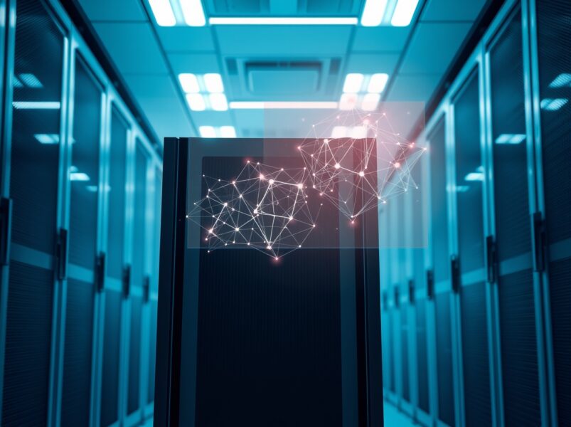 Enterprise AI server with neural network visualization representing Factory's $1.5B valuation for coding tools